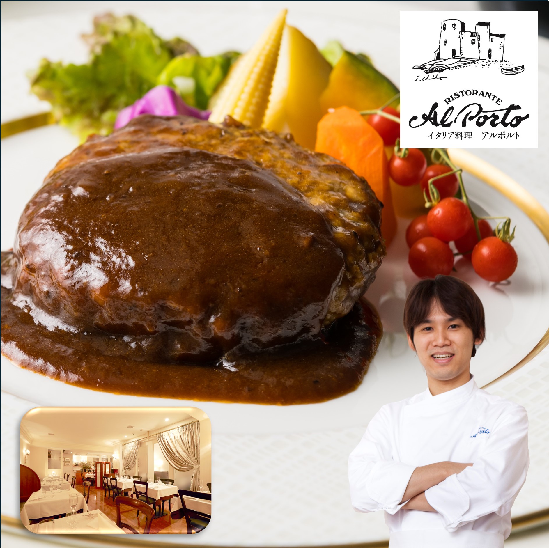 【西麻布】リストランテ アルポルト 片岡宏之監修 黒トリュフソースハンバーグ